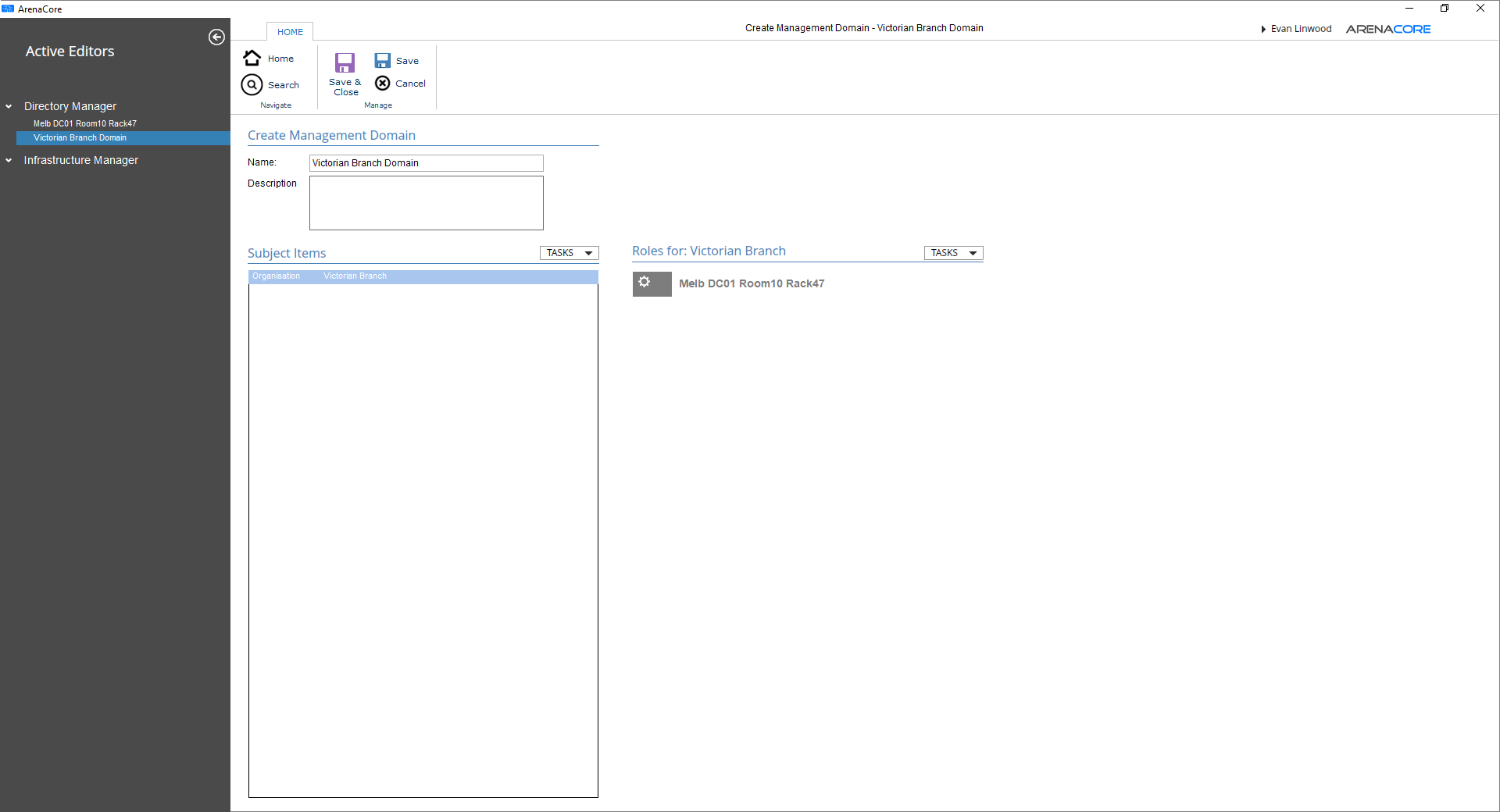 The final step needed to configure an overall platform integration setup within ArenaCore is to define a Management Domain item within the Directory Manager.